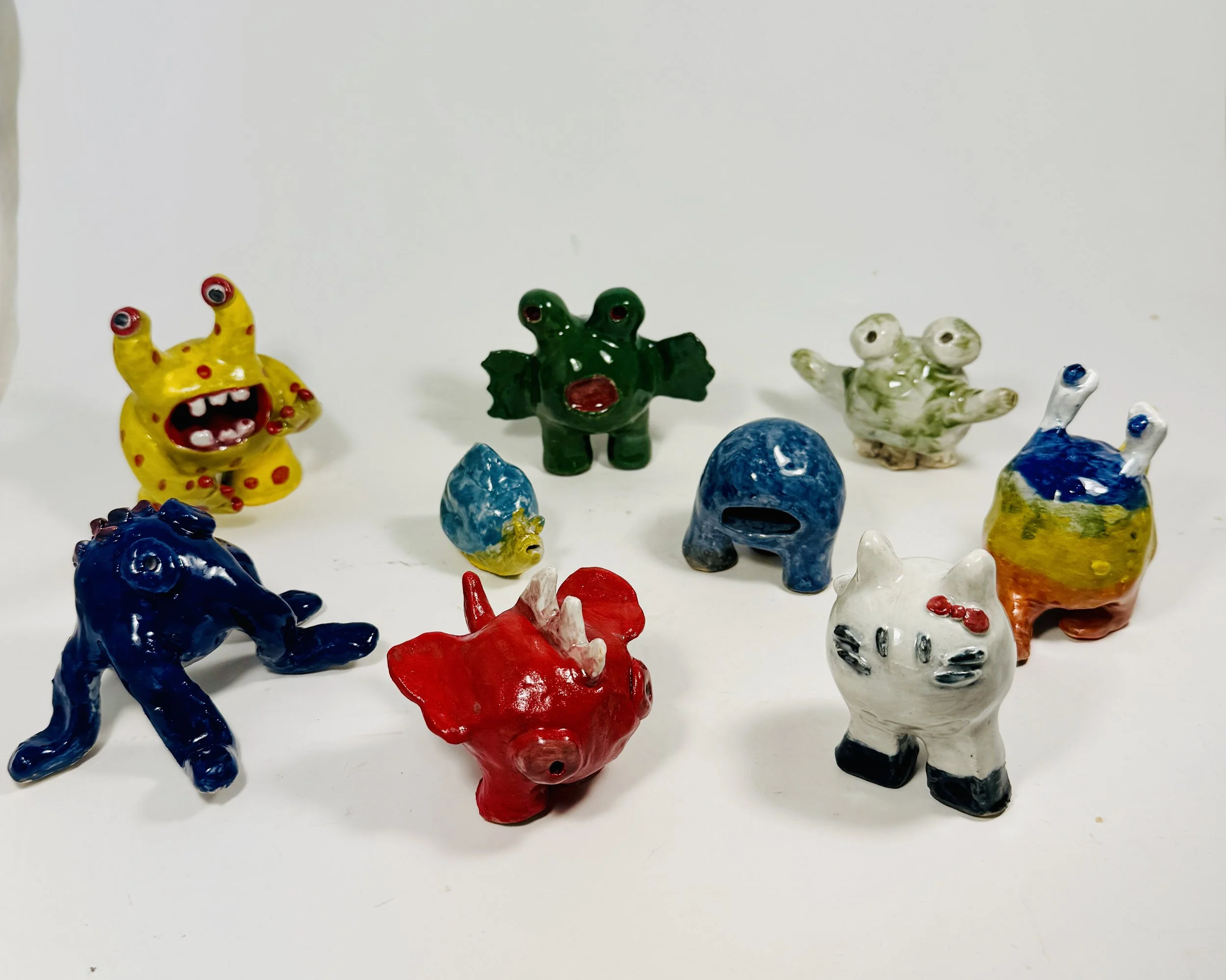 Previous works at the clay monster workshop done by kids