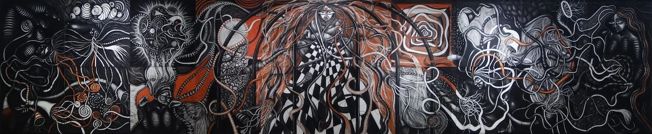 (Close Up) The Mutual Possession of Ten Worlds, Charcoal on Panel, 60" X 60" (H X W)